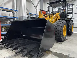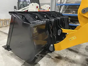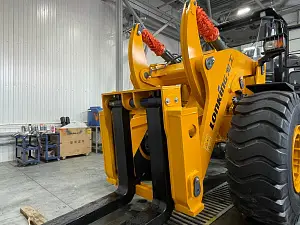крупный ковш (его объем может варьироваться от 0,5 м³ до 25 м³), который можно заменить на другой тип навесного оборудования (вилочные захваты, крюки, щетки, отвал для уборки снега и т.п.).